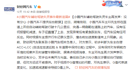 小鹏汽车辅助驾驶失灵车主再发声:没有分心 小鹏汽车不提供后台数据