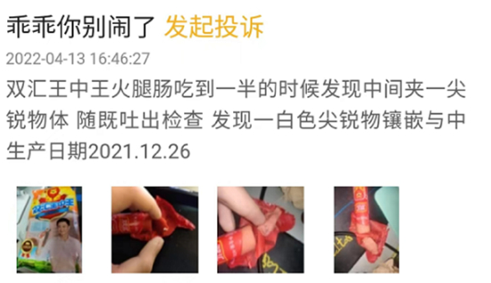 #双汇火腿肠吃出尖锐异物#话题登上热搜之后,不少网友在评论区表示,“双汇啊,那不稀奇了”,“消费者好像已经麻木了”,“应该是骨头一类的吧,我也吃出来过”。也有网友纷纷表示,“双汇出几次事了,不买不行吗”,“我几年前就不吃双汇火腿了”……