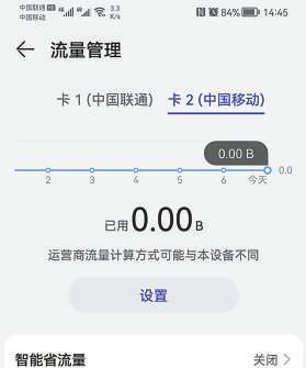 黑龙江省哈尔滨市消费者刘先生使用的是华为双卡双待手机,一张中国联通卡作为主卡,套餐含每月2000分钟通话、上网流量不限,刘先生日常通话、上网使用的都是这张卡。而另一张中国移动卡因与自家宽带和其他应用账户绑定,便只办理了9元/月的套餐(含40分钟通话、30条短信,上网单独付费),为避免产生上网流量,刘先生关闭了该卡的数据流量和智能转换功能。