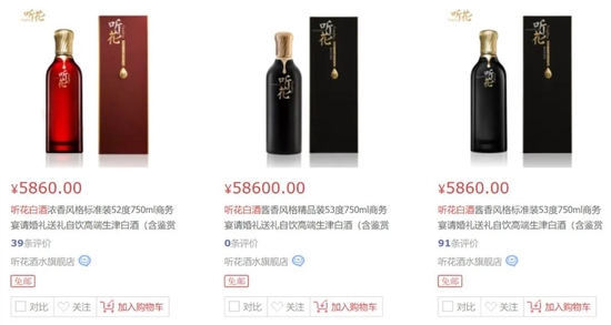 在天猫、京东等电商平台上,标准版听花酒销量极低,精品装无人问津。
