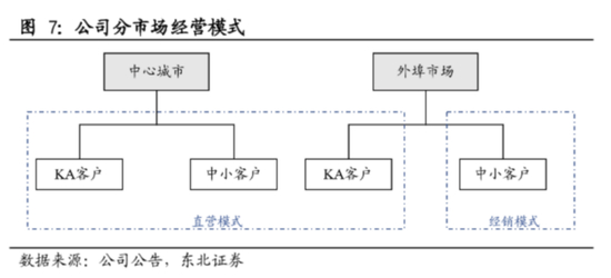 直营针对大型连锁商超(KA客户)和中心城市的中小超市、便利店终端,企业直接与其签署协议销售产品。
