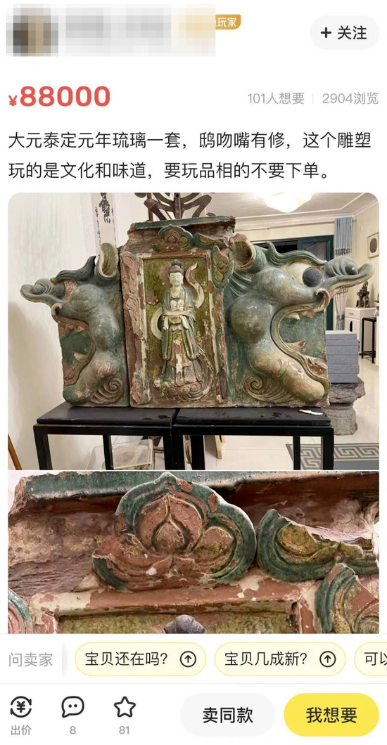 闲鱼上售卖全国重点文保单位琉璃件,官方:已找到卖家,将归还文物部门