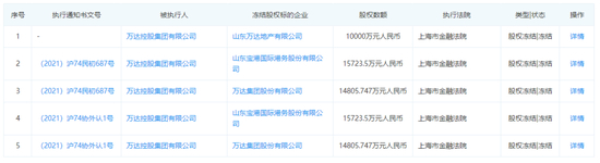 因该债务纠纷由万达控股提供保证担保,上述银行为快速实现债权,便对万达控股提起诉讼,上海市金融法院按照申请,冻结了后者所持有宝港国际、山东兴达新能源有限公司(简称“兴达新能源”)、万达股份、山东万达地产的股权,冻结期限为2021年4月至2024年4月。
