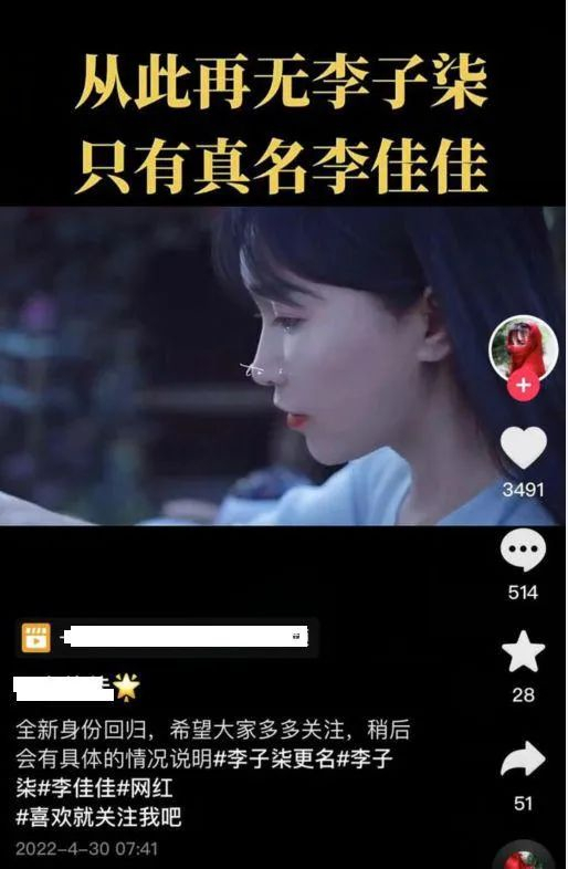 同时,有很多“李佳佳”账号发布了“从此再无李子柒,只有真名李佳佳”的内容,文案都是一样的。