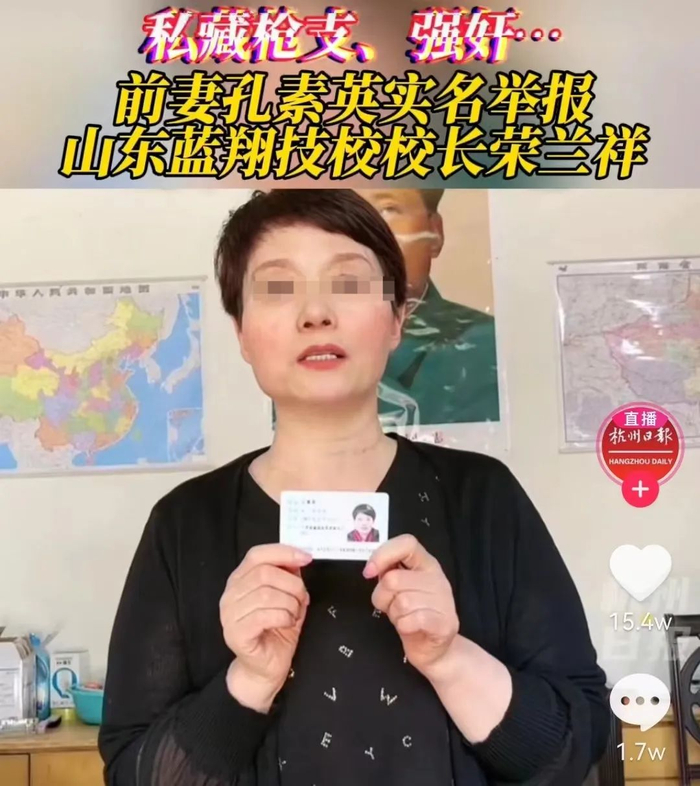 5月4日,孔素英再度实名举报前夫荣兰祥。举报视频中,她手持身份证表示,荣兰祥涉嫌私藏枪支、强奸、组织黑恶势力跨省打架,造成恶劣社会影响。