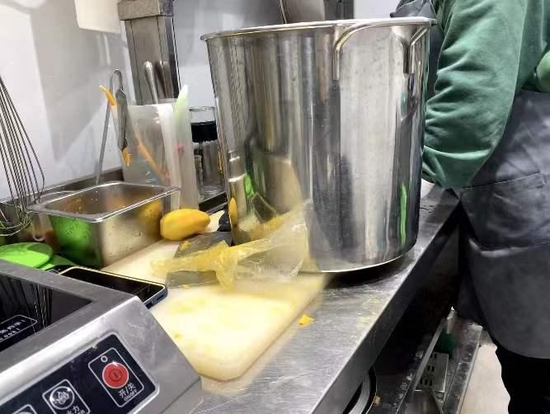 此外,店内工作人员还经常将茶壶、煮茶桶放在案板上,之后并不见清洗案板;把手机放在案板上是为了方便刷视频;店内上岗7天的员工没有健康证也正常上班……