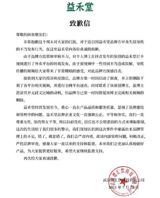 益禾堂致歉信