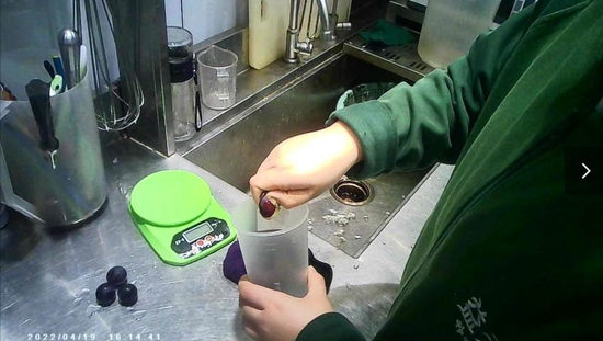 店内工作人员还不戴手套不洗手,直接手剥葡萄。很多时候,工作人员会把葡萄和抹布放在一起,丝毫不认为有什么问题。当调查人员问及葡萄是否需要清洗时,工作人员回复:“客人吃里边的果肉,不用洗。”有时候葡萄皮没有剥干净,负责清洗的工作人员会倒出来重新剥,并抱怨“葡萄皮贴得非常紧”。