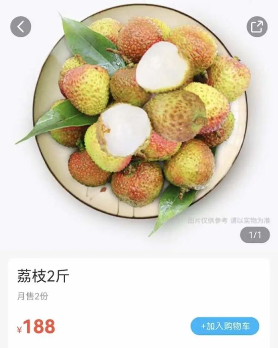 还有商家2斤荔枝开出188元,也就是500克要94元。