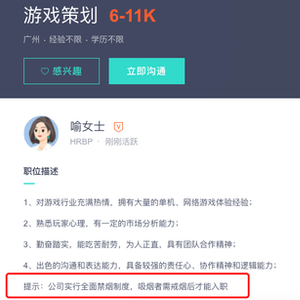 吸烟有害健康,但吸烟本身是个人的习惯。因此不好评判这项规定是否妥善,但清清楚楚写在职业描述里倒也不算强迫和欺骗。除了“戒烟”这条招聘规定,多益网络在人事上还曾曝出过更多新闻。