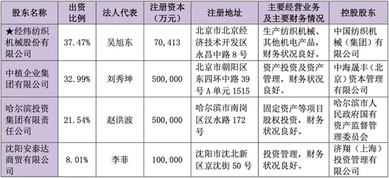 目前,在股东名单上,经纬纺机以37.47%持股比例为中融信托的第一股东,中植集团以32.98%位居第二股东,哈尔滨投资集团和沈阳安泰达商贸分别持股21.538%和8.006%,位列三、四股东。