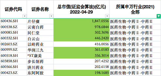 若从公司市值来看更为直观。据Choice数据,截至4月29日收盘,这25家公司总市值为5999亿元,具体到当前中药板块市值排名前十的药企中,更有多达7家公司都具有央企或国资背景。