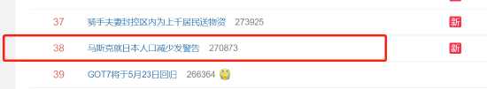 5月9日,#马斯克就日本人口减少发警告# 登上微博热搜。