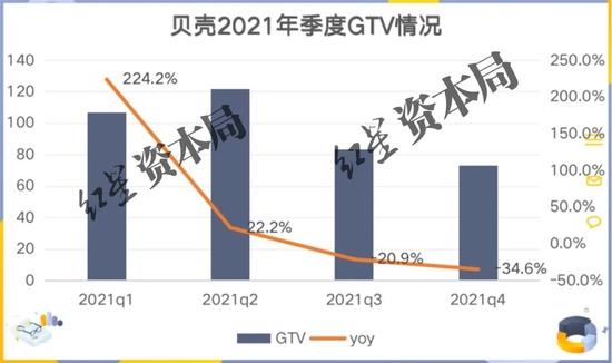 显然,贝壳GTV数据在2021年全年表现同样令人失望。