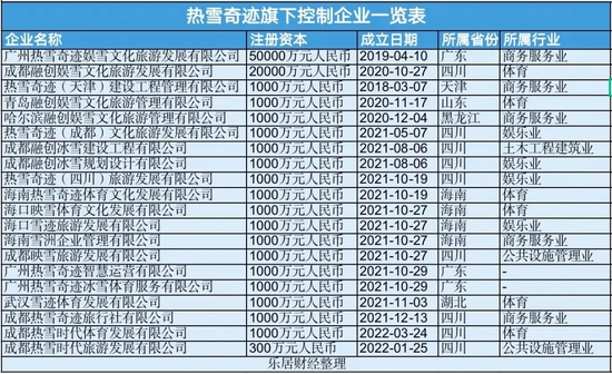 据乐居财经获悉,热雪奇迹旗下仅1家全资子公司“热雪奇迹(四川)旅游发展有限公司”,间接持股企业有20家,这些公司几乎都是在2021下半年至2022上半年注册成立的。可见,融创对于冰雪业务上市之急切。