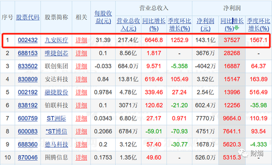 九安医疗2021年一季度利润增速冠绝A股 图源东方财富网