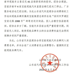 不止于此。5月7日,山东省汽车流通协会发布了一份名为《关于观致品牌汽车消费警示》的文件。协会表示,宝能汽车人去楼空目前出现严重经营问题,致使观致品牌车主的合法消费权益无法得到保障并受到严重损害。