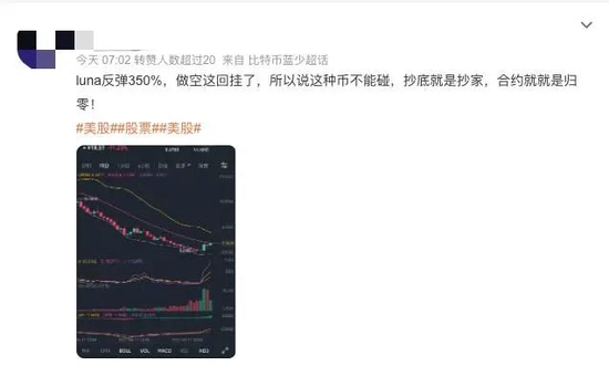 此前,韩羽听说过LUNA,但从未买过。在其他虚拟币上亏损不少后,看到有人通过做空或做多LUNA赚钱,韩羽也动了心。