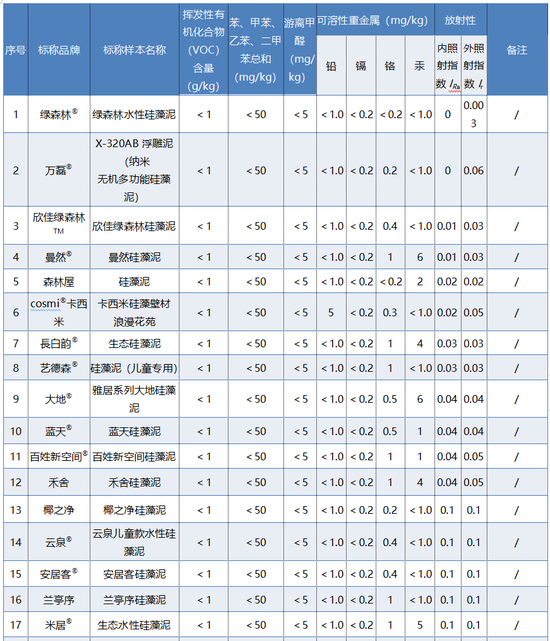 20款硅藻泥样本安全指标测试结果