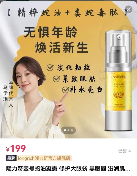 类似的还有“隆力奇壹号蛇油凝露”,其销售页面标注“补水亮白”“眼部抗皱”“改善多种肌肤问题”“焕亮肌肤 赶走暗沉粗糙”等文字描述。事实上,其宣称的“亮白”是特殊用途化妆品才具有的功效,而该产品只是普通化妆品。