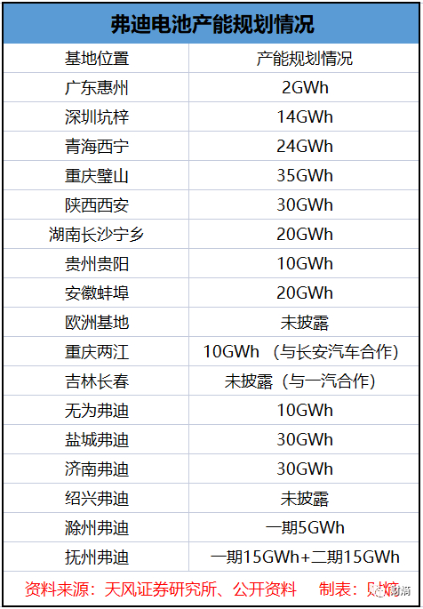 弗迪电池产能规划情况