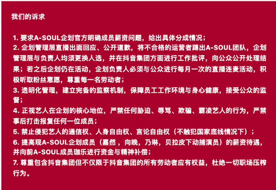 但粉丝们仍然对A-SOUL官方的说法不满意。在最新的一份粉丝联名信中,提出了更多关于薪资、解约和霸凌的疑问,要求官方作出回应。