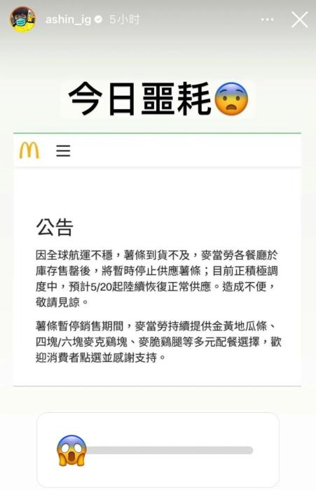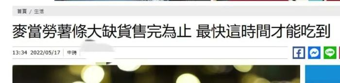 麦当劳去年8月才因航运供货不稳闹“薯饼荒”,