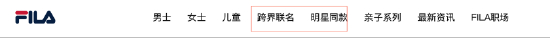 而FILA官网上的发展历史介绍的页面中,并没有销量、店铺量、营收、企业策略、发展方向等企业相关信息,只有代言人的信息,并且有专门的两个板块是跨界联名和明星同款。这足以证明FILA对明星代言的重视程度。