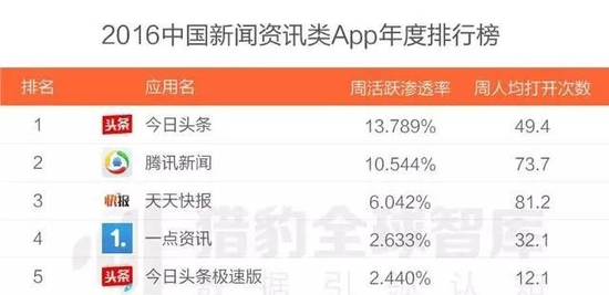 里约奥运会的成功,对于OMG来说有更重要的意义。2016年上半年,今日头条在新闻类APP上的排名一举超过腾讯新闻占据榜首,正是因为奥运会项目,腾讯新闻的市场占有率有所回升,而腾讯为了阻击头条于2015年年底才发布的天天快报,借着里约奥运会,从无到有爬到了排行榜的第三位。