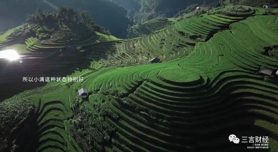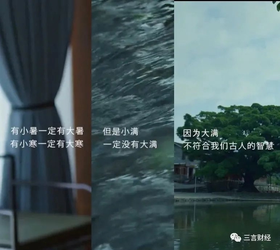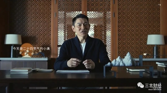 这则广告内容为刘德华科普小满节气,视频在乡间山林中取景,有点类似此前网红李子柒的拍摄风格,画面宁静怡人,哪怕知道是一条广告,也想反复观看很多遍。
