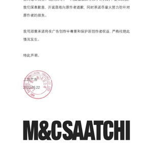 M&CSaatchi广告公司22日发布声明称,该公司奥迪服务团队系奥迪小满篇品牌视频开发团队,在视频内容开发过程中,因该公司奥迪服务团队版权意识淡薄,在未与版权方沟通的情况下,直接使用了抖音博主北大满哥关于“小满”的视频中文案内容给刘德华先生、北大满哥、一汽奥迪品牌带来了巨大的不便和困扰。“我们深表歉意,并诚恳地向原作者道歉,同时承诺尽最大努力弥补对原作者的损失。我司郑重承诺将在广告创作中尊重和保护原创作者权益,严格杜绝此情况发生。”