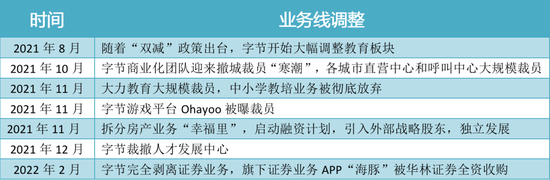 2021年,互联网行业迎来多事之秋:平台反垄断、教培行业“双减”、算法推荐整顿、金融业强监管等,无一不打在字节众多业务线的命门上。于是到了梁汝波阶段,字节“伤筋动骨”式调整教育板块、商业化团队大规模裁员、出售金融业务等一系列操作,开始了剧烈收缩。