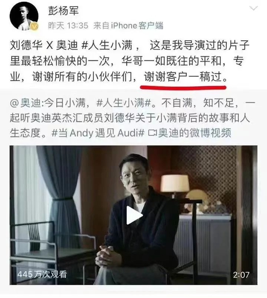 就算无法在海量视频里,发现文案抄袭;广告的导演到底声名如何,这点儿背调,奥迪自己总是能做的吧。