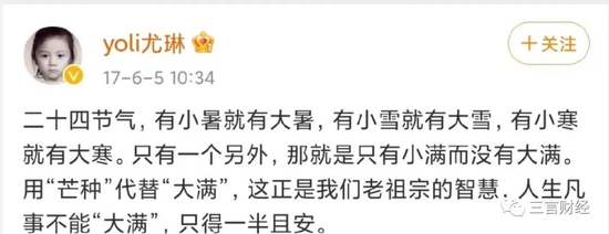 2017年,博主@yoli尤琳曾发文谈过小满,其文案和北大满哥的说法相差无几。