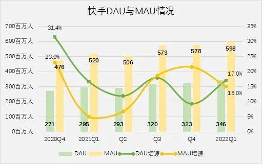 一季度,快手日活达到3.46亿人,同比增长17%,月活5.98亿人,同比增长15%,考虑到一季度有奥运会与春节效应,上述增长情况只能说中规中矩。