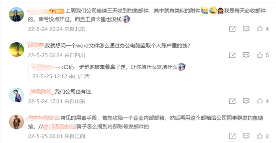 在评论区,也有不少网友表示收到过类似的钓鱼邮件。