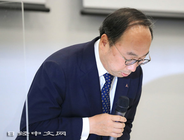 因调查进展报告指出质量数据造假问题,漆间社长在记者会上致歉(5月25日,东京都千代田区)
