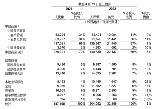 财报就指出,本季营业成本占收入比例从去年同期的66%增加至68%的原因之一是,盒马、天猫超市等直营业务占比提升,导致存货成本占收入比例上升。