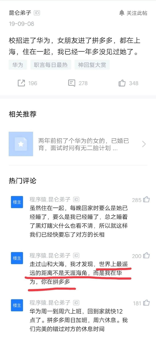 知乎问题:有在华为工作的男友或老公,是怎样一种体验?