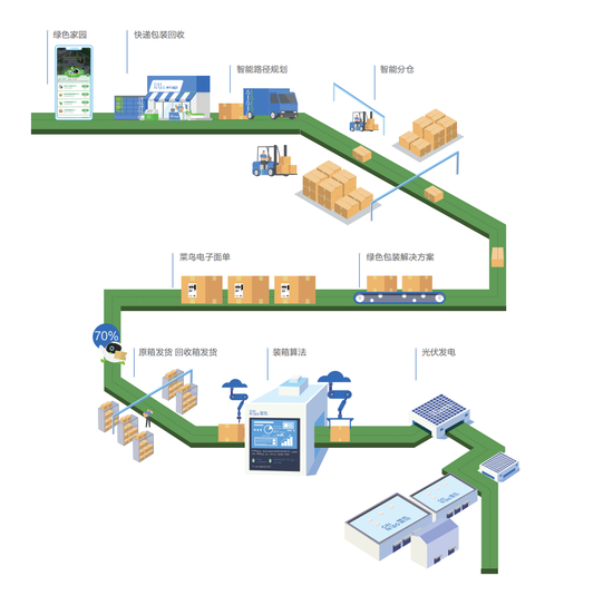 假如没有电子面单以及路径算法等技术的投入,菜鸟绿色供应链的场景又在哪里?