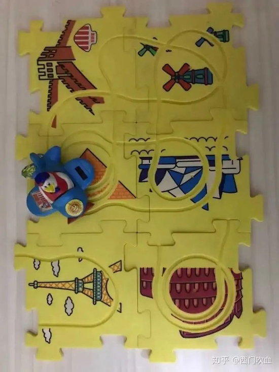 1998年肯德基的玩具里有款奇奇鸡开着小飞机环游世界的主题拼图,每个套餐里只有地图的一部分,凑齐形成一个闭环轨道飞机才能启动,激起大人小孩的胜负欲。