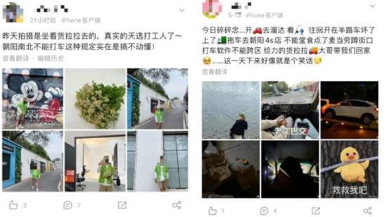 出行受限的部分北京市民将目光投向了货拉拉等货运平台。在微博平台上,有多位北京市民分享了自己乘“货拉拉”出行的经历,并称“上有政策,下有对策”。