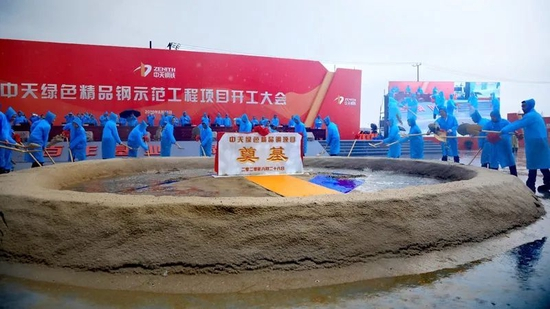 中天钢铁官网于2020年10月10日发布的一条动态“中天钢铁产业集群布局定位——打造高质量发展的钢铁样本”显示,8月31日,中天绿色精品钢项目固废处理中心开工建设;9月14日,打下高炉第一桩。