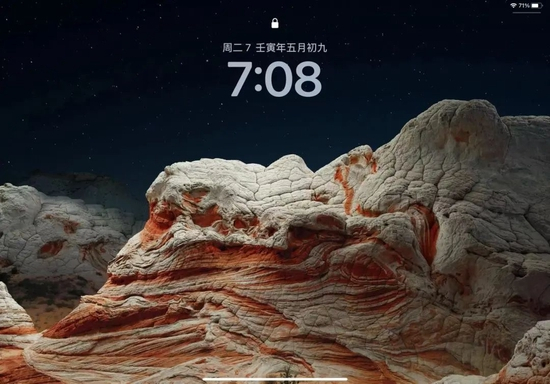 而且锁屏界面还没打开,日历就出 bug 了,默认的壁纸显示的日历只有农历时间。