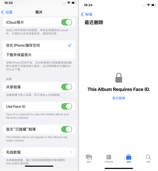 之前一直被大家诟病脱裤子放屁的 iOS 隐藏相册,也多了一步验证 face id,多少好歹是穿了一些。