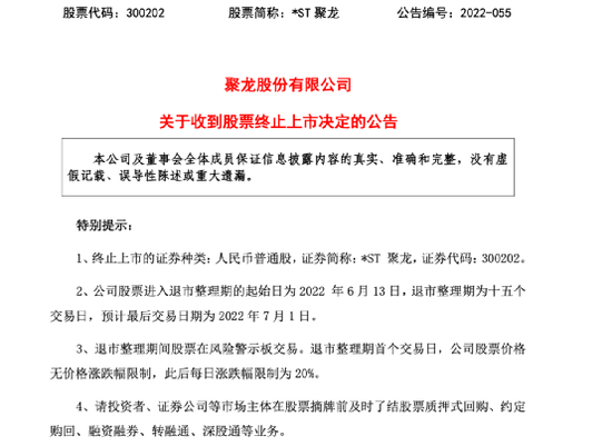 2021年4月7日,浙商银行从资金池扣划聚龙股份两家子公司共计3.56亿元资金,并解除上述业务。聚龙股份直到2021年4月12日的“自查”才披露上述担保情况。