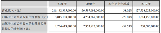 比亚迪2021年年报相关数据