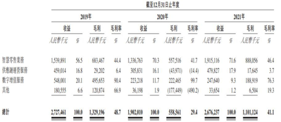 根据招股书,2019-2021年,“合伙人模式”下的智慧零售业务所得收入分别为2.5亿元、7.62亿元及14.79亿元,分别占总收益的9.2%、40.1%及55.3%,2021年甚至超过了直营模式的收入。
