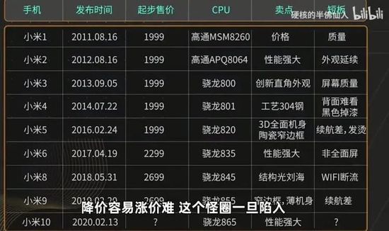 小米手机,降价容易涨价难。/B站@硬核的半佛仙人
