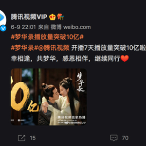 6月9日晚10点,腾讯视频官微发博,表示该平台上《梦华录》播放量已破十亿。